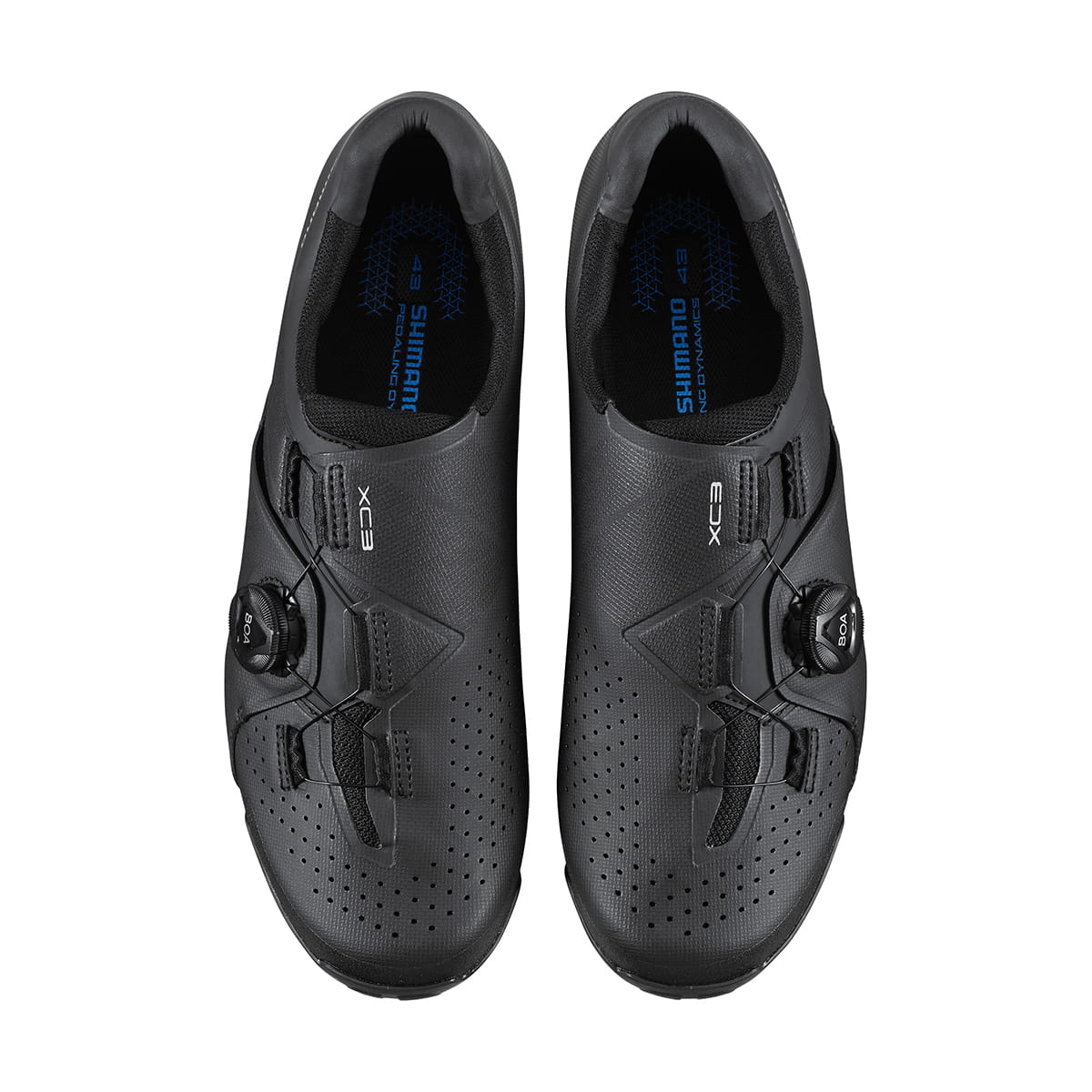 Gumowa podeszwa z bieżnikiem XC zwiększa powierzchnię kontaktu z pedałami przyczepność podczas chodzenia.