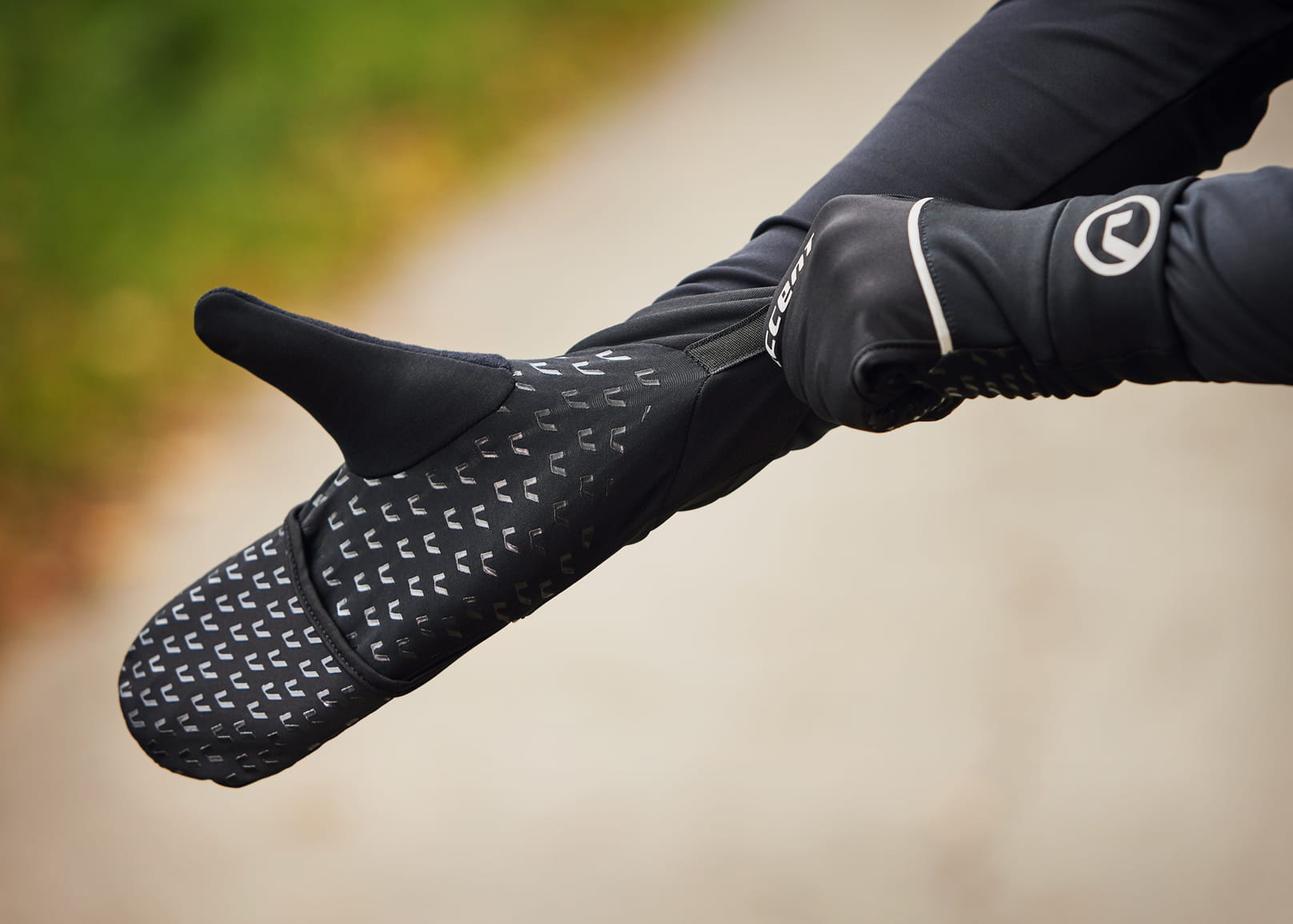Ocieplane rękawiczki rowerowe wyposażone w specjalny pokrowiec na palce.