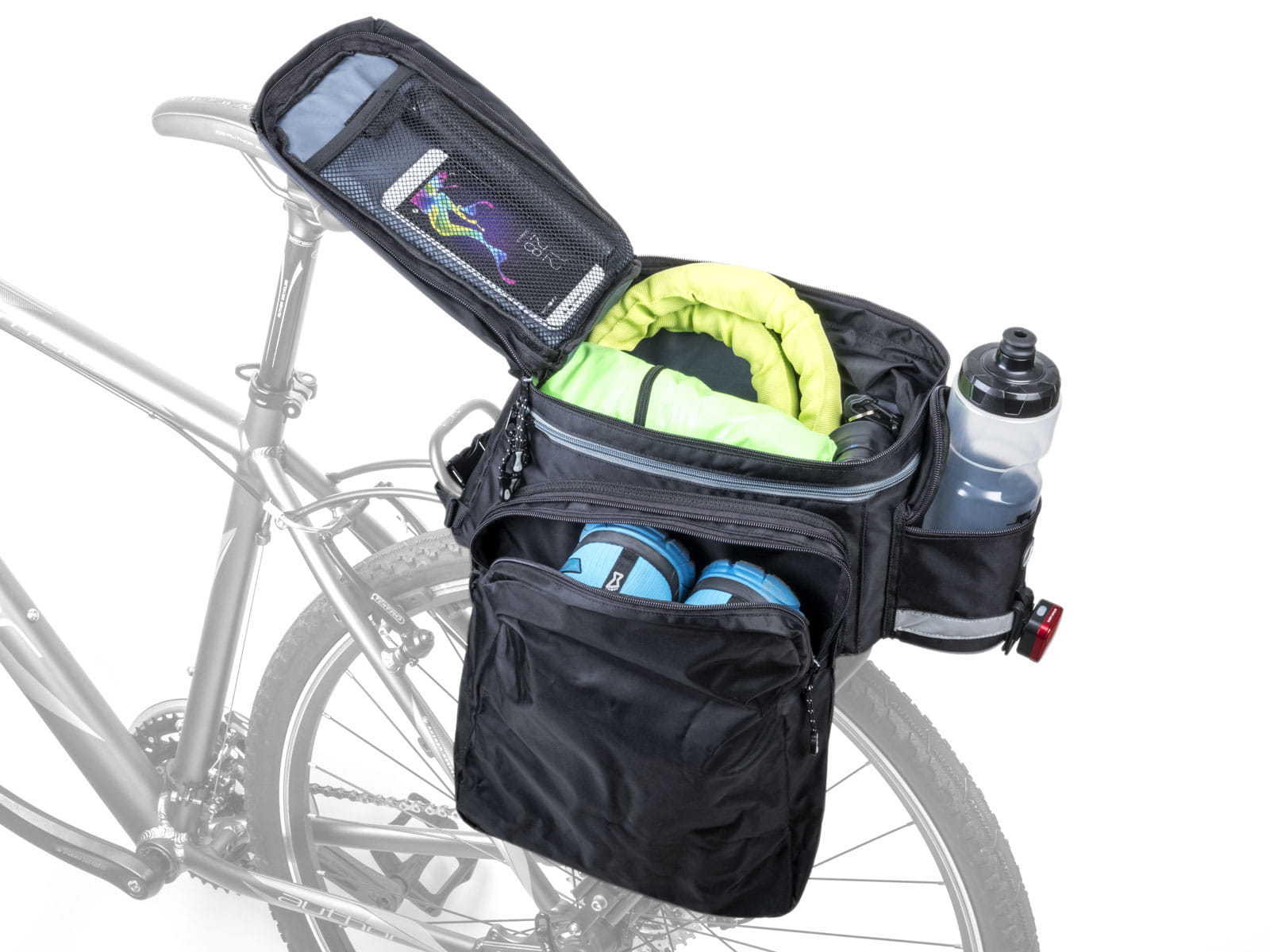 Torba na bagażnik rowerowy z odpinanymi bokami.