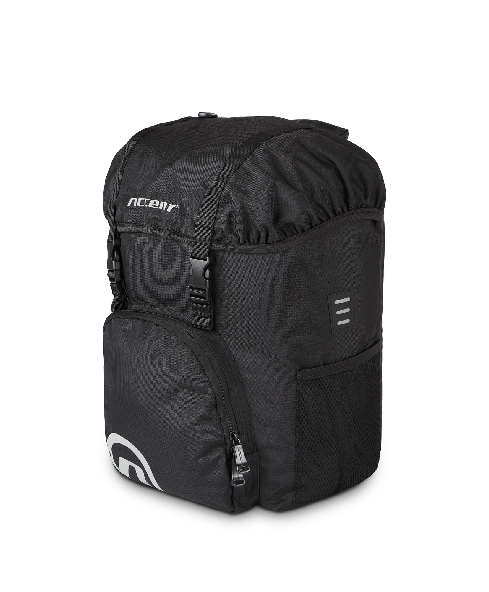 Boczna torba na bagażnik wykonana z trwałego, odpornego na uszkodzenia poliestru 400D.