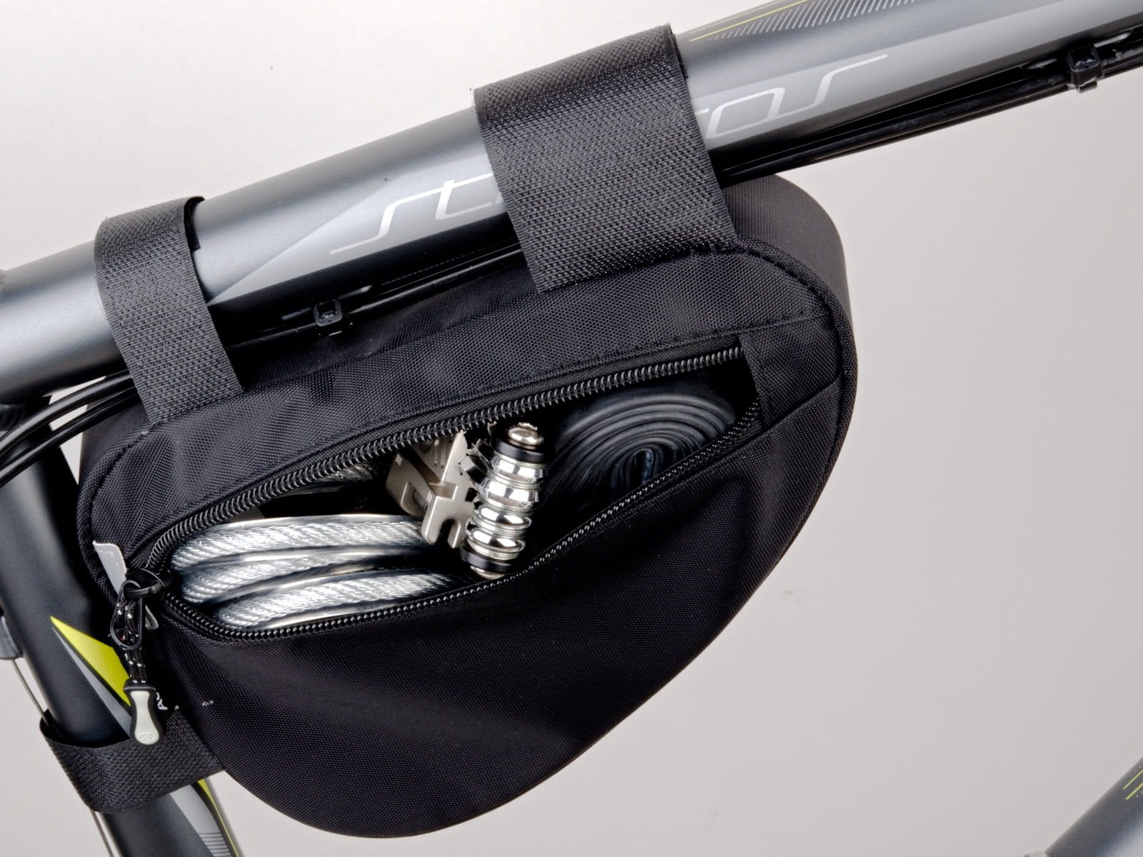 Mocowanie do ramy za pomocą pasków z rzepem.