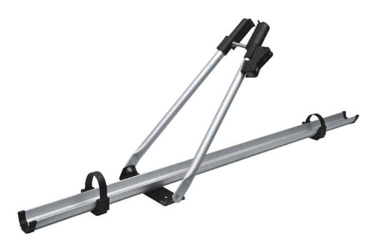 Aluminiowy uchwyt do przewożenia roweru na dachu samochodu. Lekka i wygodna konstrukcja pasująca do aluminiowych lub stalowych belek. Regulowane paski do mocowania kół. Rower jest zamknięty na zamek z kluczykiem.