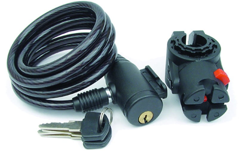Zapięcie rowerowe linkowe spiralne z uchwytem mocującym.